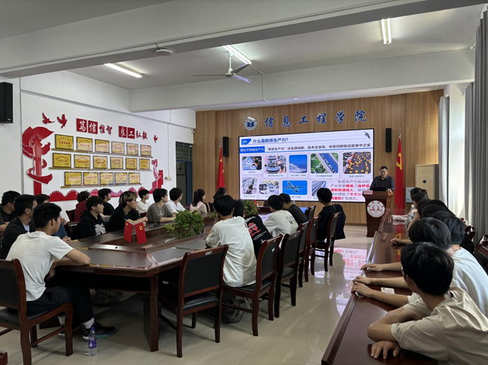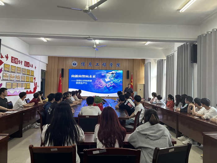 为进一步推动“时代新人铸魂工程”实施,5月8日下午,副院长陈得宝以《向新向智向未来——深刻认识和把握新质生产力》为题,为信息工程学院师生讲授专题思政课。