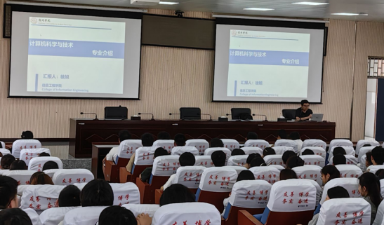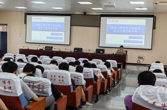 为了进一步加强2022级学生对学院专业的再认识,为后续的选专业工作打好基础,2024年6月14日中午13:00,信息工程学院在学校第二会议室举行2022级计算机大类专业宣讲会,教学副院长潘正高,教学秘书徐旭、各专业负责人、2022级辅导员以及全体2022级学生参加了宣讲会。