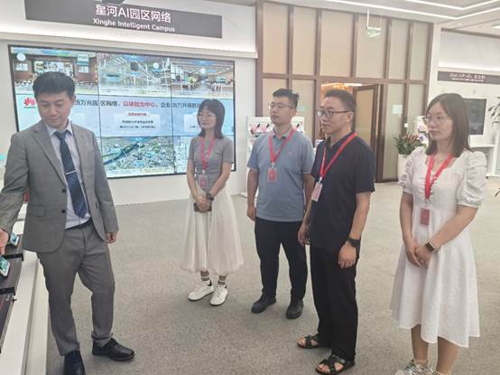 走访期间,首先参观了华为展厅,展厅内,前沿的科技产品、创新的解决方案以及华为在全球范围内的成功案例令人目不暇接。华为代表详细介绍了公司的发展历程、文化理念、技术实力以及未来战略规划,让学院老师深刻感受到了华为的创新魅力和深厚底蕴。