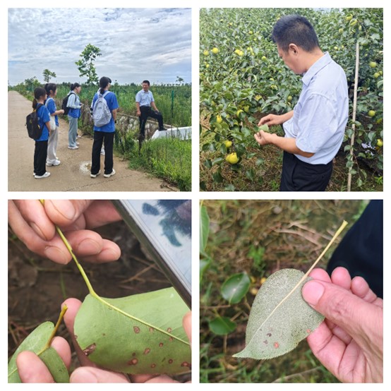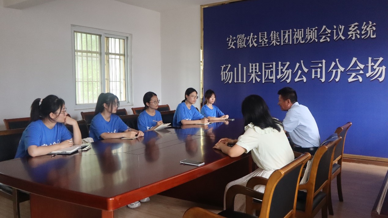 实践团首先与果园场工会王主席及农业病虫害防治专家进行了深入的座谈和交流。王主席详细讲解了砀山果园场的悠久历史、当前的发展现状以及面临的实际需求,使我们对砀山梨产业有了全面而深刻的认识。农业病虫害专家们分享了丰富的实践经验和研究成果,为我们解答了关于砀山梨病虫害防治的问题,并提供了防治策略,极大地丰富了团队的知识和视野。