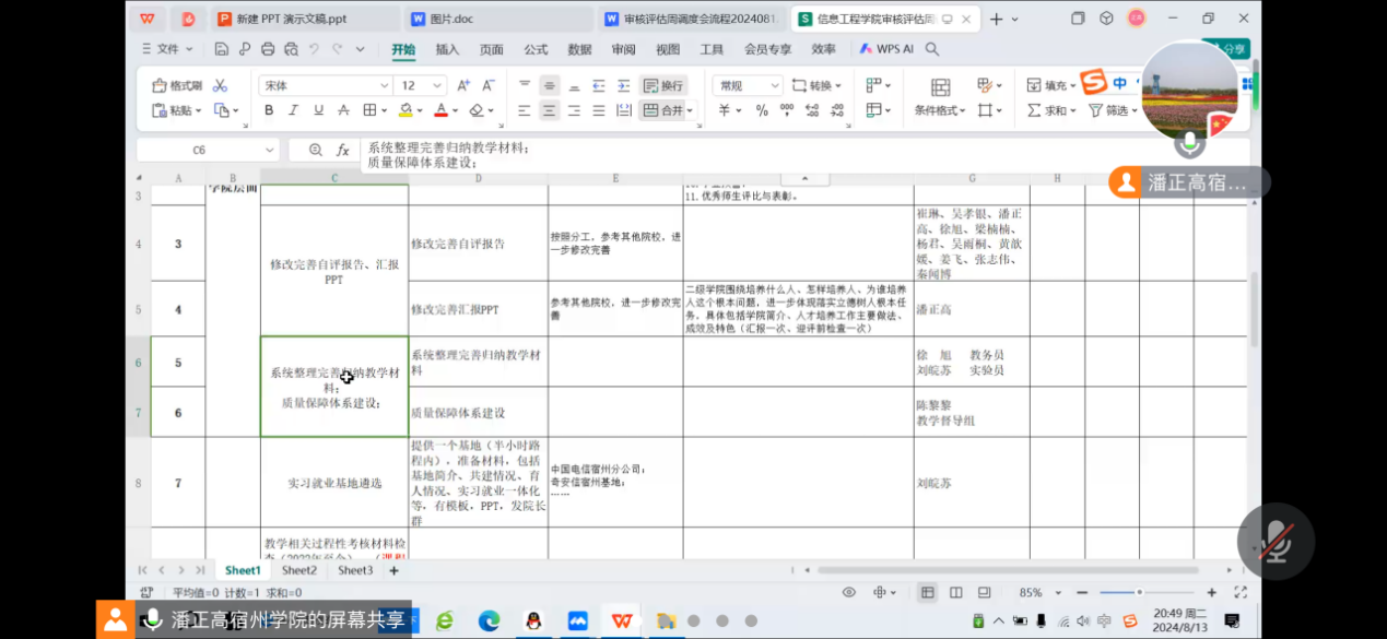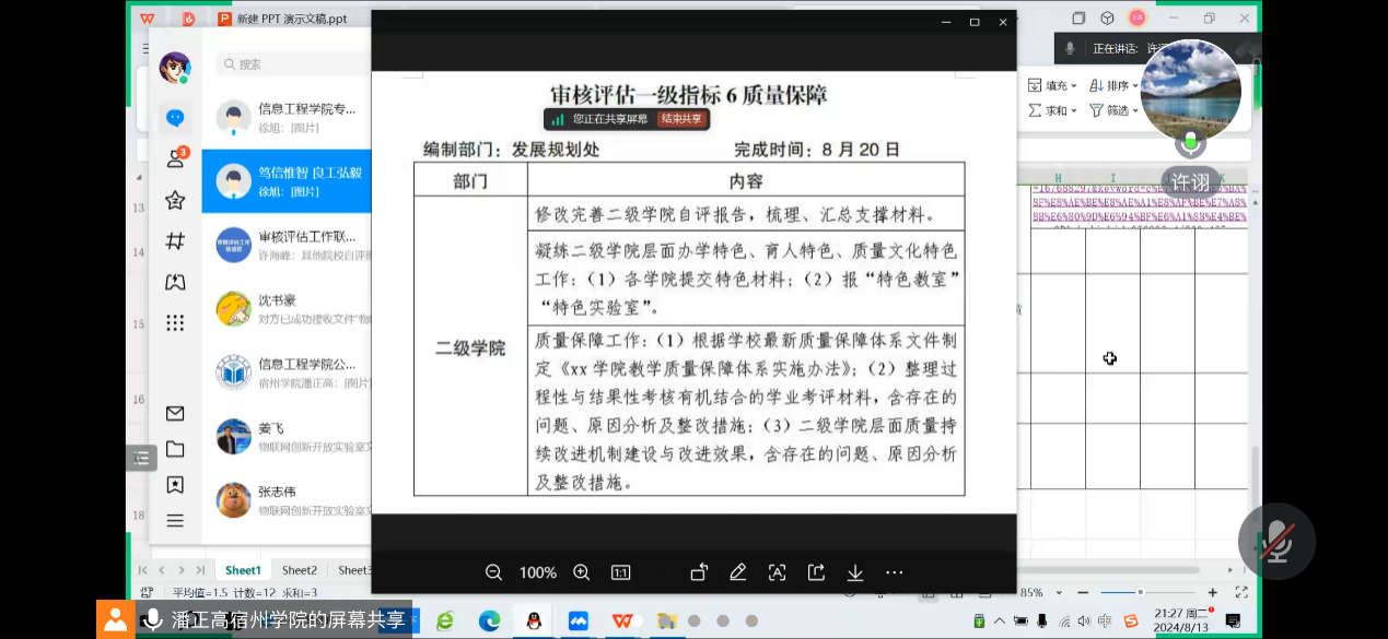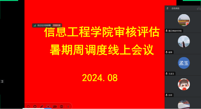 为进一步推动学院教育教学质量的持续提升,确保顺利迎接教育部教育教学审核评估工作,信息工程学院于2024年8月13日晚上20:30,通过腾讯会议平台成功召开了暑期周调度会议。党委书记余晓永,党委副书记、副院长(临时负责)崔琳,党委副书记吴孝银,科级干部,教研室主任(副主任)、辅导员、教务员、科研员、实验员,以及大学生开放活动室负责人参加了会议,会议由教学副院长潘正高主持。