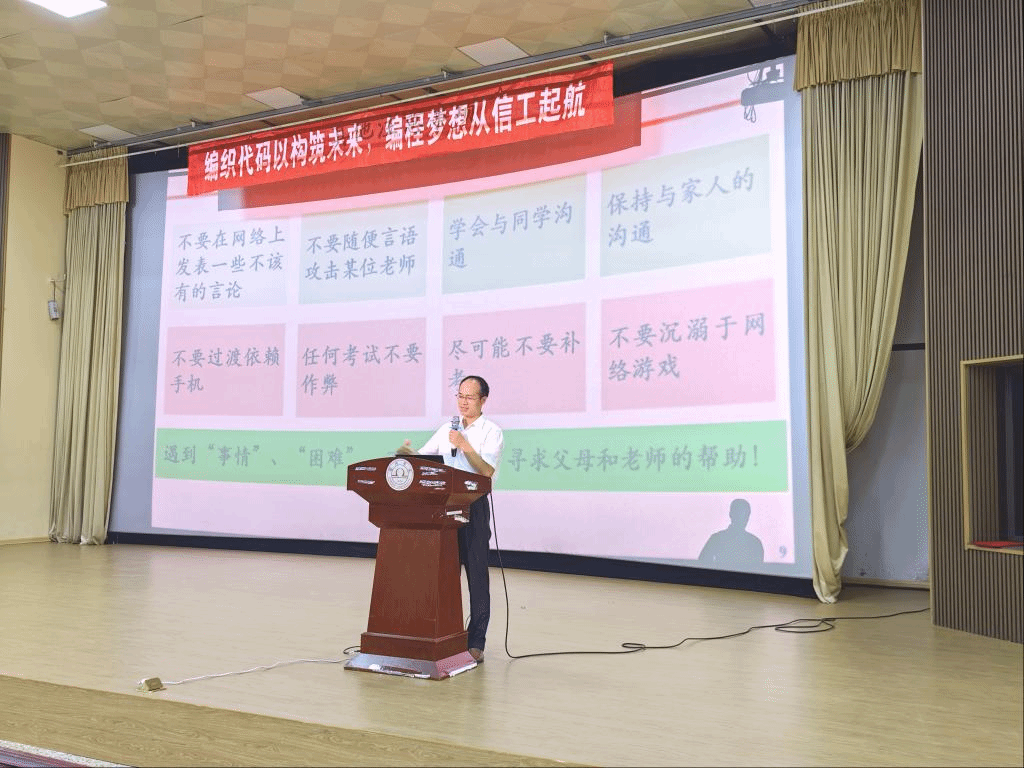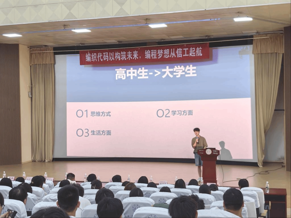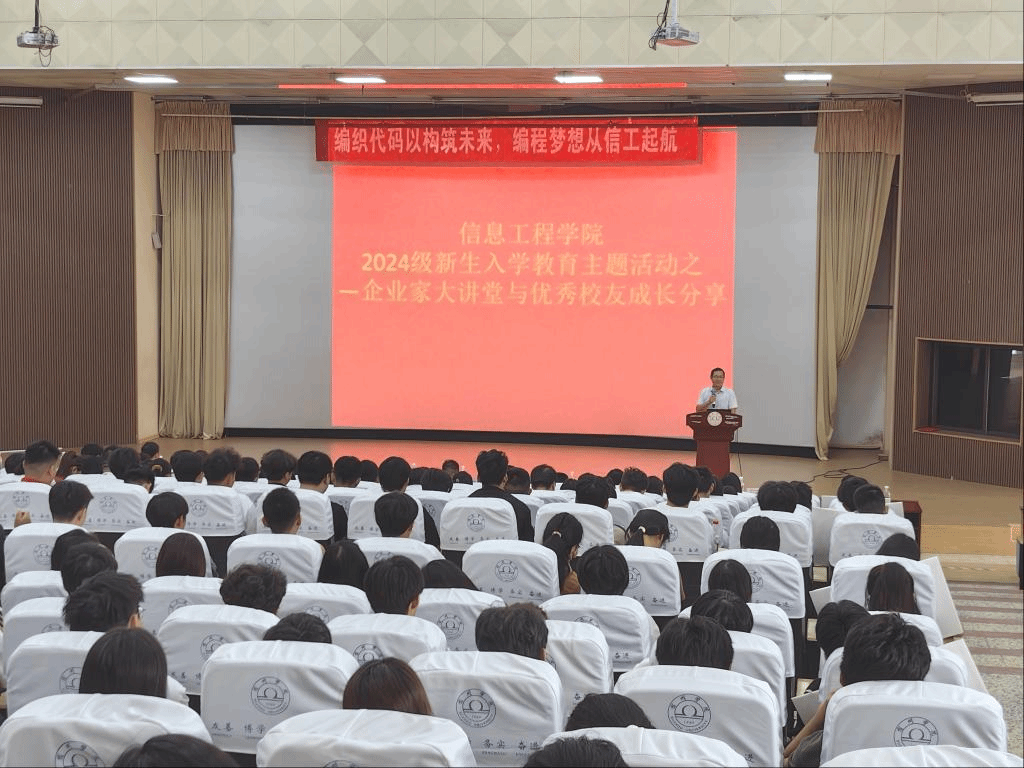自2013年以来,信息工程学院每年都会在新生入学之际举办企业家大讲堂和优秀校友成长分享会活动。活动邀请知名企业家介绍IT行业的最新发展动态,以及市场对IT人才的知识、能力和素质的最新要求。同时,学院也邀请优秀校友分享他们的学习经历、生活经验和工作经验,以此帮助新生及其家长更好地了解学校的整体情况、专业特色、学业规划以及就业前景。此外,活动还展示了基于校企合作的应用型人才培养模式,旨在帮助新生树立专业认同感,培养专业兴趣,并为他们未来四年的学习和生活做好充分的准备。