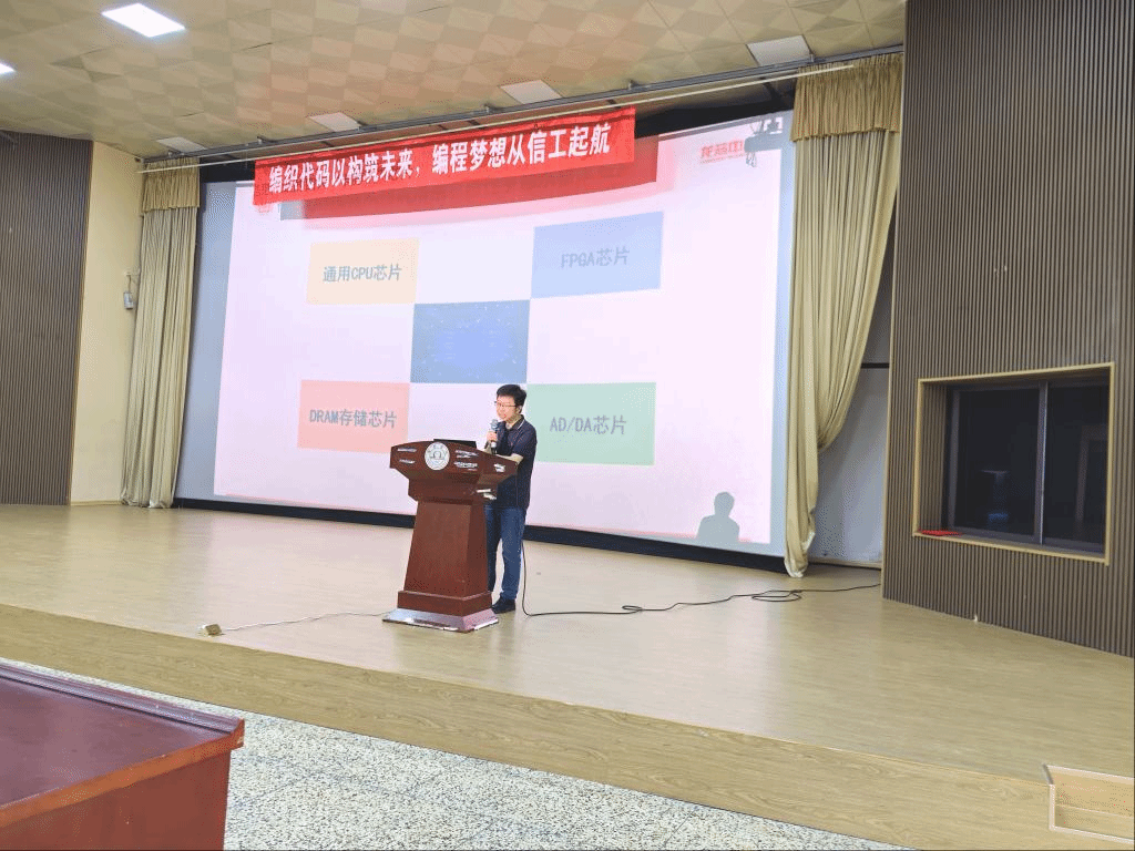 活动第二项是企业家大讲堂。特邀嘉宾龙芯中科(合肥)技术有限公司总经理彭飞以“龙芯自主CPU芯片发展道路”为题,介绍了国产CPU芯片龙芯系列产品的研发过程以及生态体系建设成果,不仅让24级的新生们了解到近年来国产芯片研发技术的进步和突破,也增强了他们学好专业知识、科技报国的责任感。特邀嘉宾南京星云软件科技有限公司总经理魏志刚以“启迪未来,筑梦家国,探索AI视觉产业的未来之路”为题,为大家分享了计算机视觉研究领域的最新研究进展和典型场景应用,帮助同学们了解了计算机视觉最新技术及其应用,激发了他们对专业学习的兴趣。