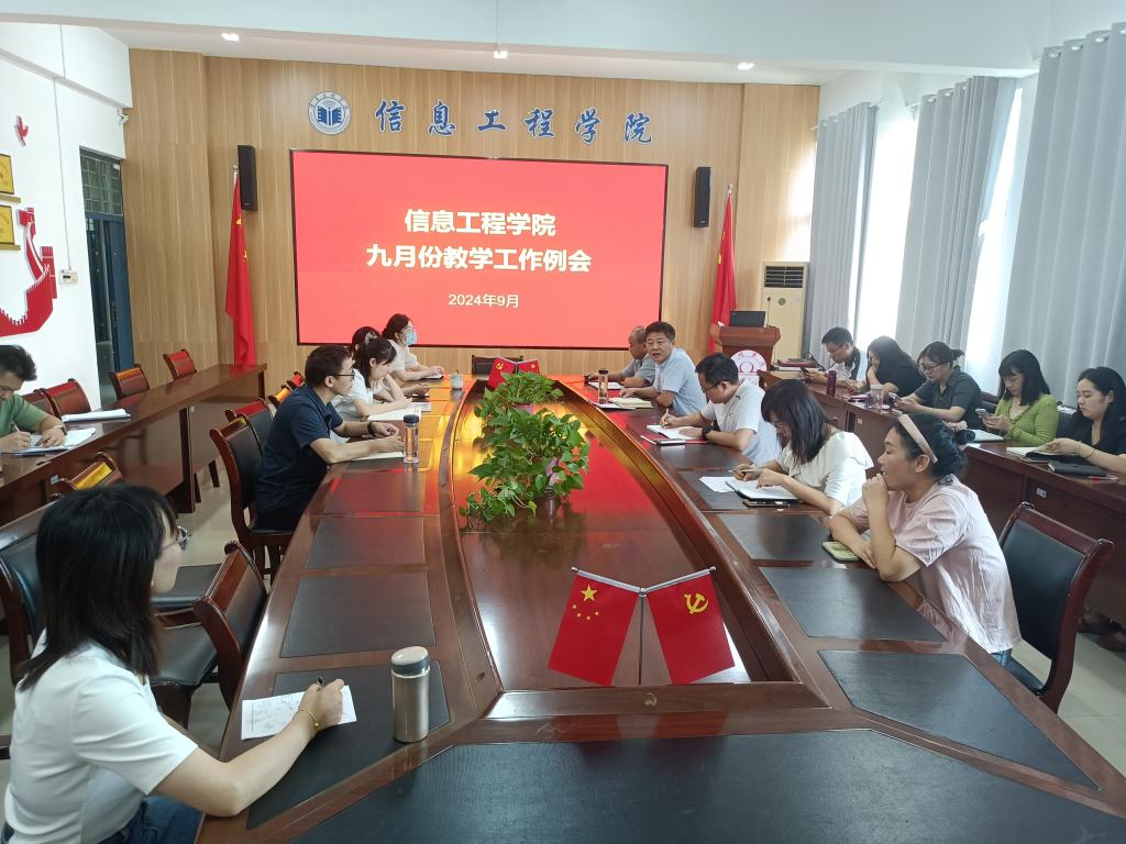 9月11日下午,信息工程学院在工B315会议室召开九月份教学科研工作例会,院党委书记余晓永,党委副书记、副院长崔琳(临时负责),组织员黄永刚,党委副书记、纪委书记吴孝银,教学副院长潘正高及全体教职工参加会议,会议由崔琳主持。