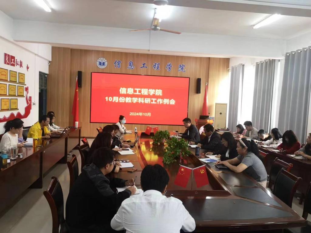 10月9日下午,信息工程学院在工B315会议室召开10月份教学科研工作例会,信息工程学院党委书记余晓永,党委副书记、副院长崔琳(临时负责),党委副书记、纪委书记吴孝银,教学副院长潘正高及全体教职工参加会议。会议由崔琳主持。