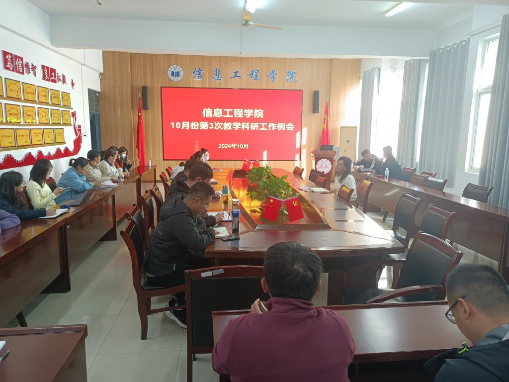 10月23日下午,信息工程学院在工B315会议室召开10月份第3次教学科研工作例会,全体教职工参加会议。会议由崔琳主持。