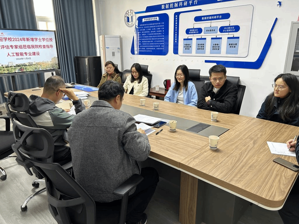 2024年11月6日,信息工程学院召开人工智能专业新增学士学位授予专业评审会。校评估专家组成员宁青青副院长、张光辉老师、魏强老师和教务处沈荣生老师莅临我院指导,信息工程学院院长崔琳,副院长潘正高,专业骨干教师徐旭、叶春明、田文泉、李松州等参加了会议。会议由信息工程学院副院长潘正高主持。