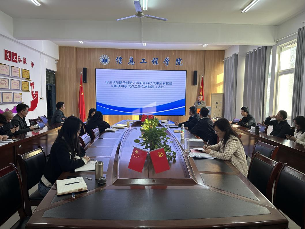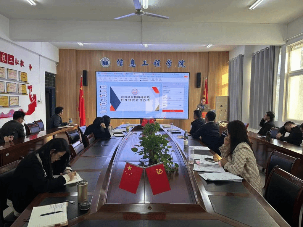 2024年11月6日下午,宿州学院科研处副处长毛强为信息工程学院师生开展科研政策宣讲,旨在帮助师生们更好地理解和把握国家及学校当前的科研政策方向与内容,提升他们的科研能力和热情。信息工程学院全体教职工参加了会议,会议由信息工程学院党委书记余晓永主持。
