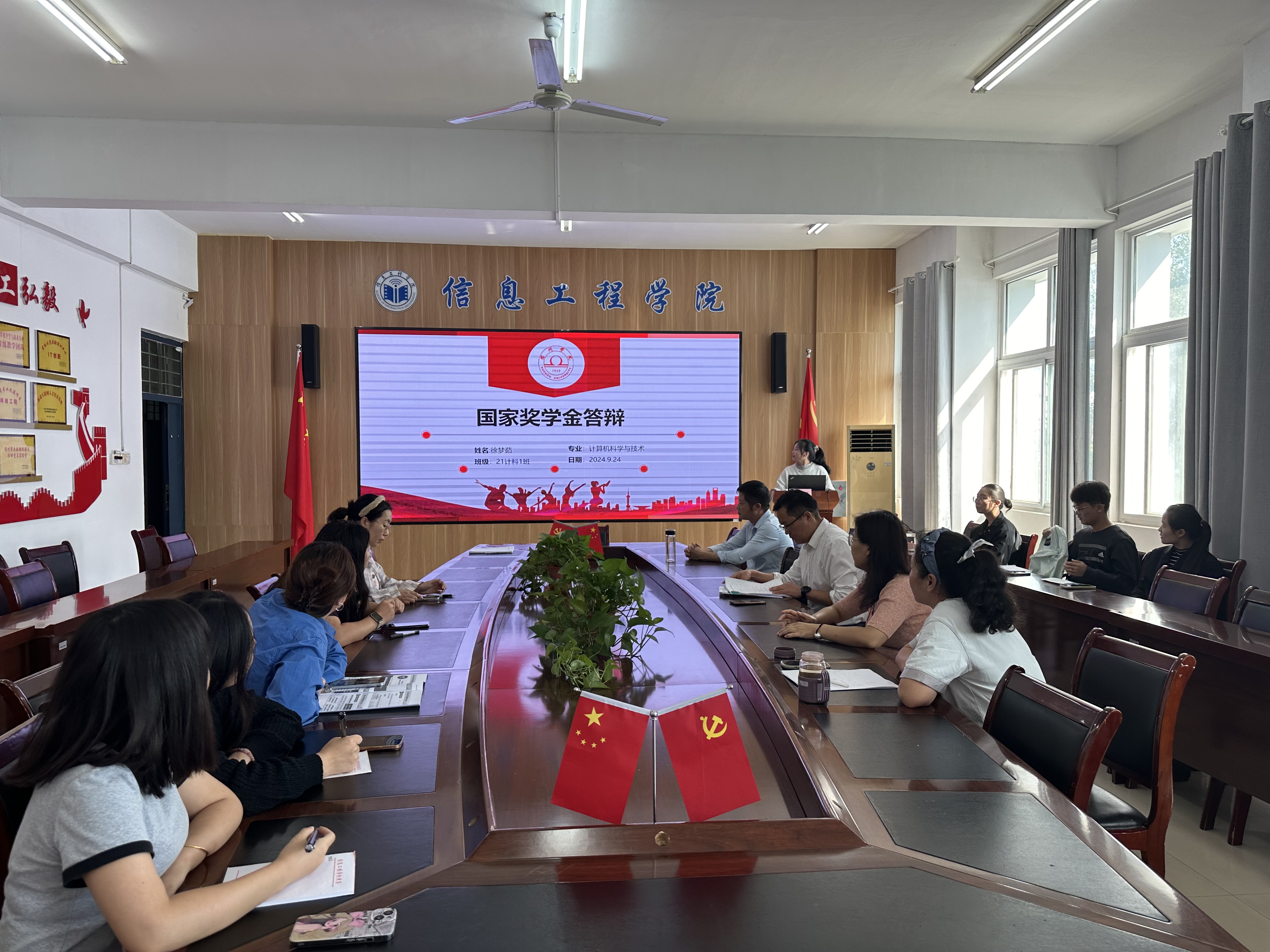 9月10日下午,信息工程学院在工b315召开2024年国家奖学金评审会,信息工程学院成立由党委书记余晓永为组长,党委副书记、纪委书记吴孝银,副院长(教学)潘正高、组织员(正处级)黄永刚为副组长,全体辅导员和班主任为成员的国家奖学金评审小组,评审会由信息工程学院党委书记余晓永主持。