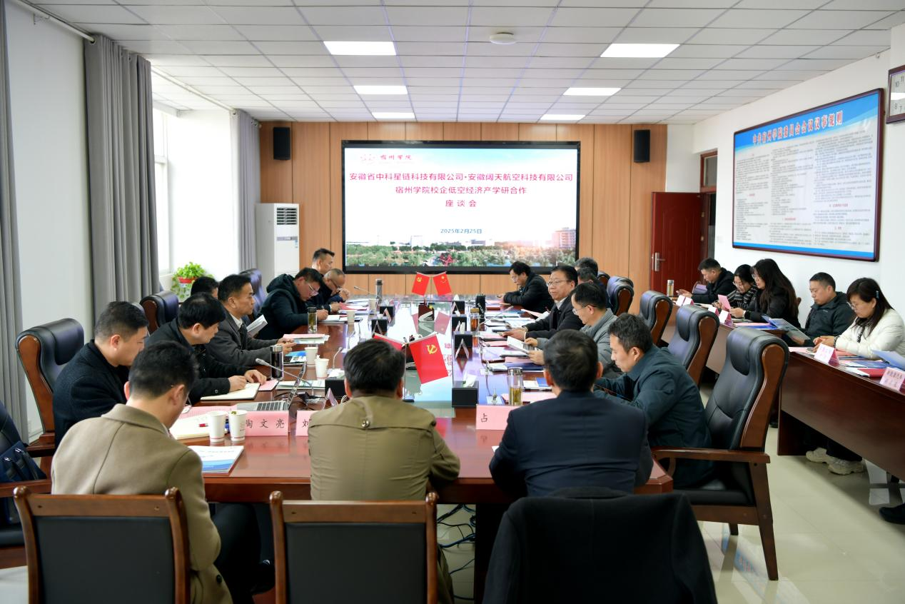 2月25日,宿州学院联合多家企事业单位在逸夫楼A506会议室召开低空经济产学研合作座谈会。会议以深化校企合作、共促低空经济发展为主题,汇聚安徽省中科星链科技有限公司、安徽阔方航空科技有限公司、宿州市人民政府办公室副主任驻杭州办、安徽理工大学、皖北卫生职业学院、宿州市埇桥区供销合作社联合社等政校企多方代表,共商低空经济领域产学研协同创新路径,助力区域产业升级与经济发展。宿州学院党委常委、副院长杨维志主持本次座谈会。