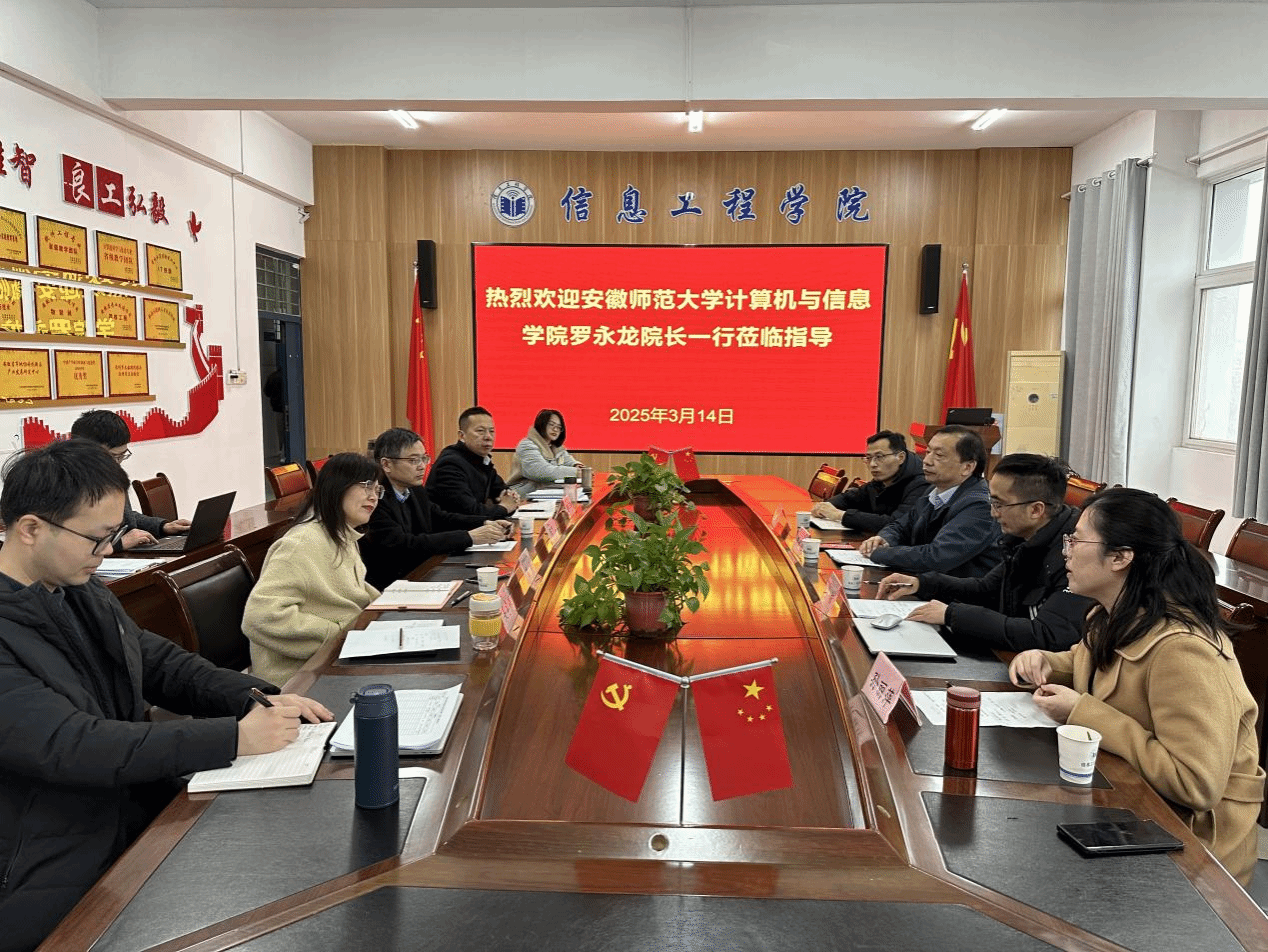 活动伊始,崔琳对罗永龙院长一行的到来表示热烈欢迎。随后,罗永龙详细介绍了安徽师范大学计算机与信息学院在学科专业建设方面的优秀成果以及学院近年来的发展历程与创新举措,同时,还分享了安徽师范大学计算机与信息学院在审核评估、推进工程教育认证以及国家基金申报等方面的宝贵经验,为信息工程学院提供了宝贵的参考。