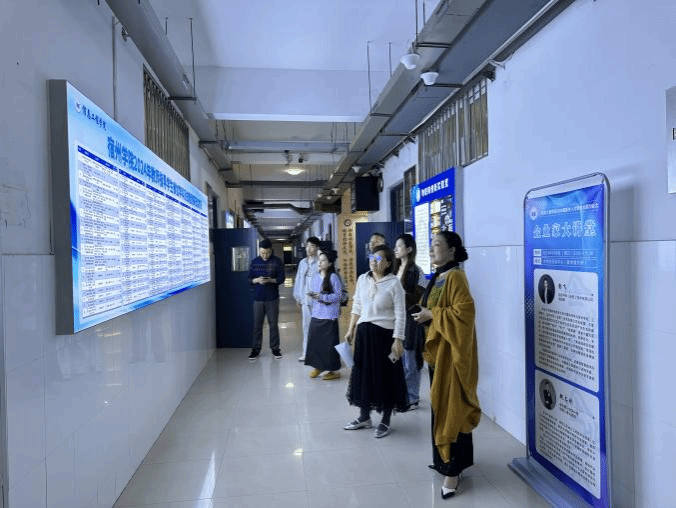 首先,音乐学院调研团队在崔琳的陪同下,实地参观了信息工程学院的科研平台和创新实验室,近距离观看了学生们为各类大赛精心准备的比赛作品与设备,随后,调研团队来到成果展示区,通过展板、实物展品,全面了解信息工程学院近几年来在学科竞赛中的优异成绩。
