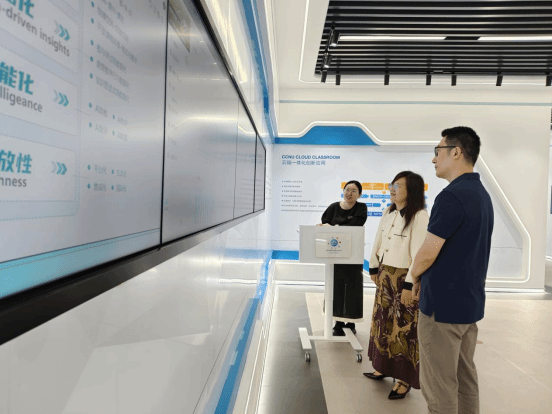 上午,崔琳一行首先参观了人工智能教育学部国家数字化学习工程技术研究中心的建设成果,中心副主任孙建文教授向大家介绍了中心的发展状况和近年来取得的一系列成绩,并展示了华师大正在使用的小雅平台。接着,大家前往会议室交流。参会人员围绕华中师范大学人工智能教育学部人工智能+教育方面的经验和方法展开探讨。