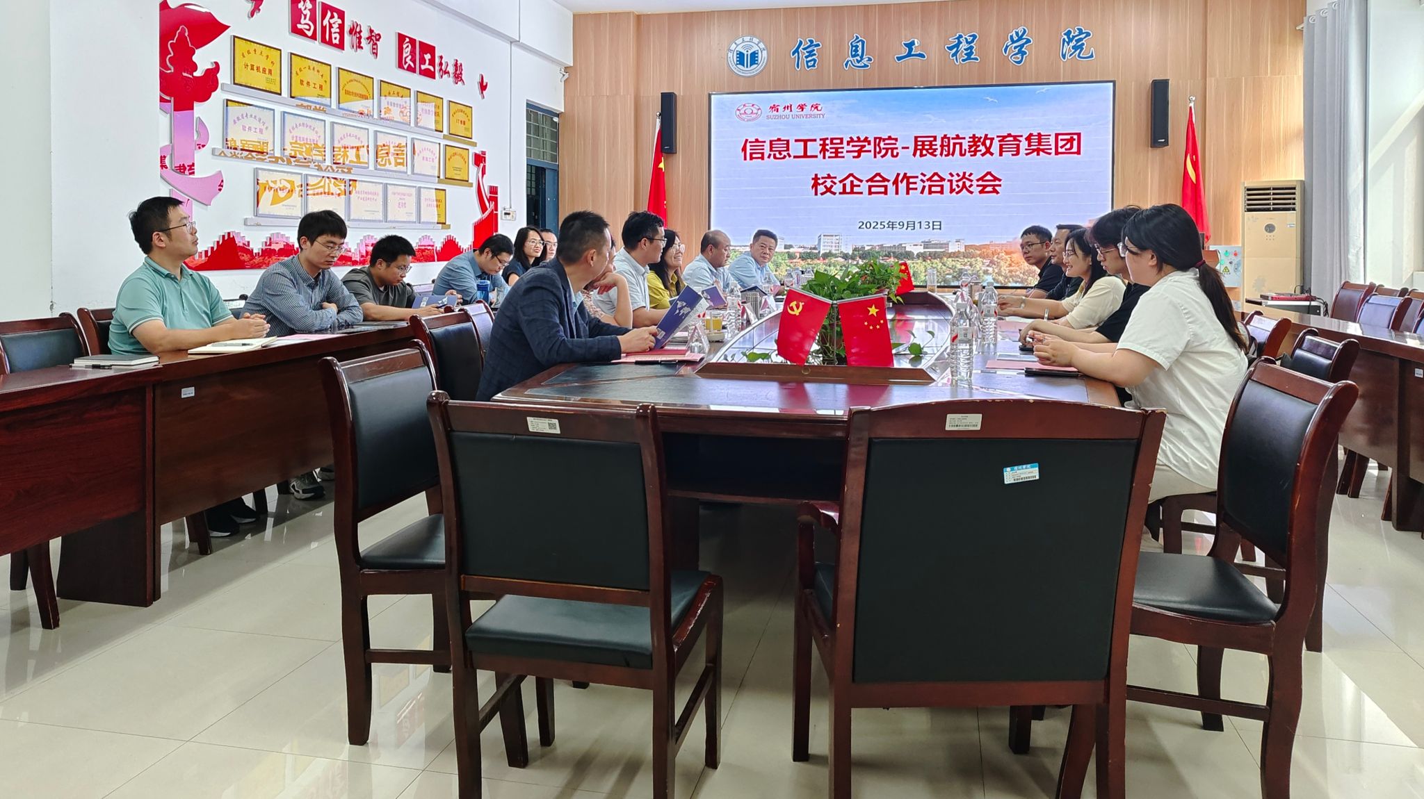 9 月 13 日下午,信息工程学院在工 B315召开与展航教育集团的校企合作洽谈会,院长崔琳主持会议,双方代表共同参会。