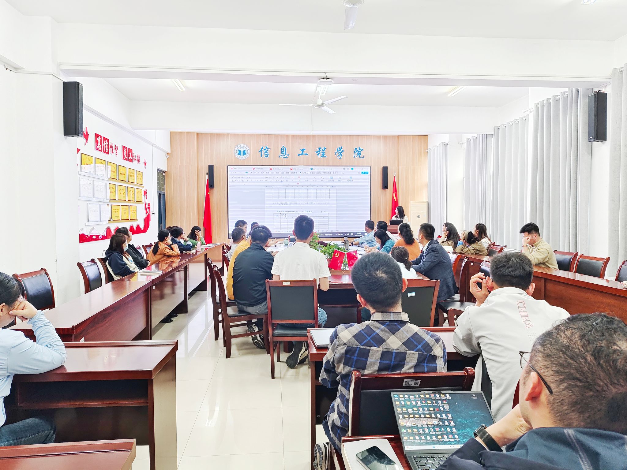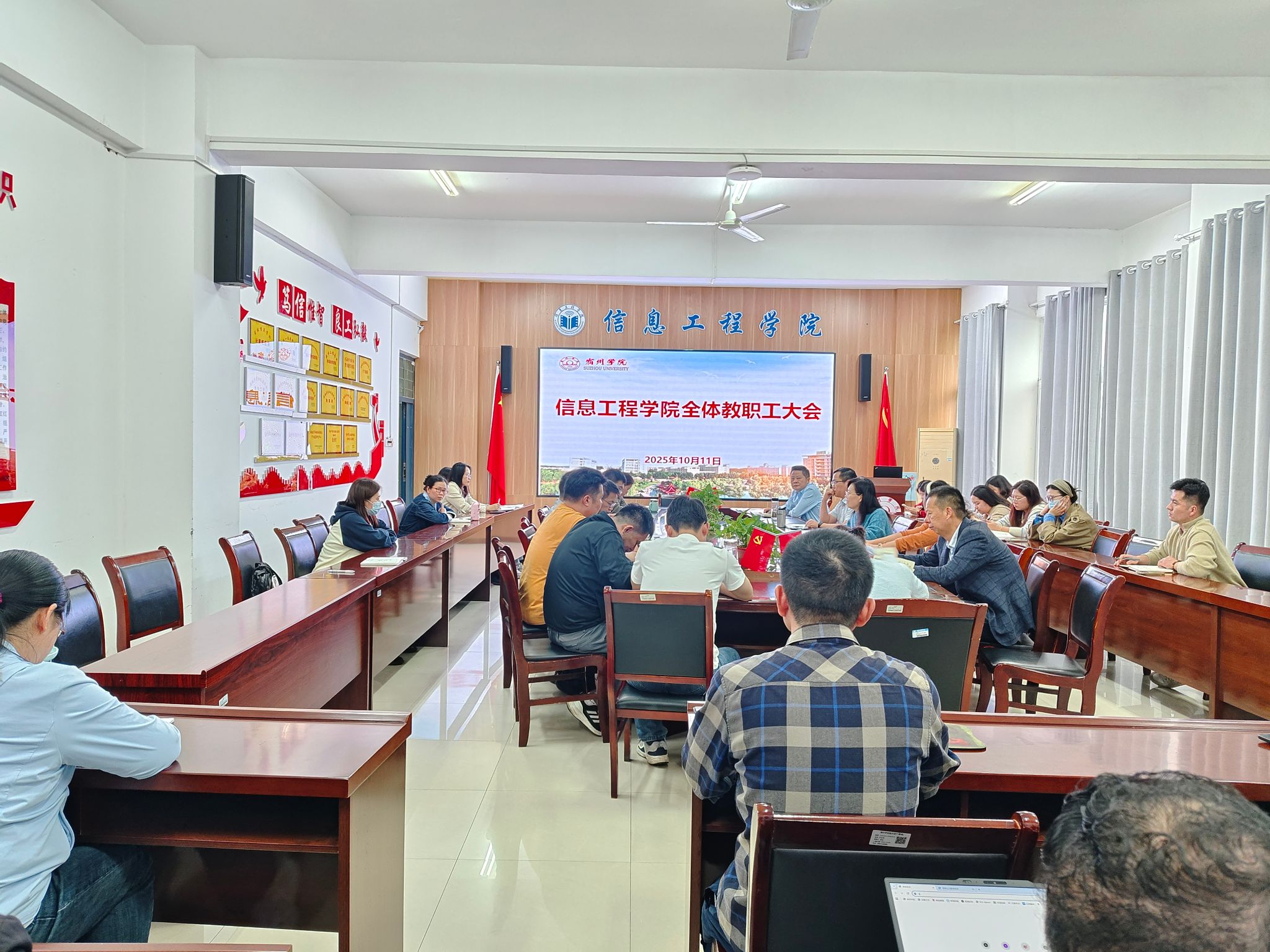 10月11日,信息工程学院在工B315召开十月份第一次全体教职工大会,信息工程学院党委书记余晓永,党委副书记、院长崔琳,党委副书记、纪委书记吴孝银,副院长潘正高、张万礼及全体教职工参加会议。会议由崔琳主持。