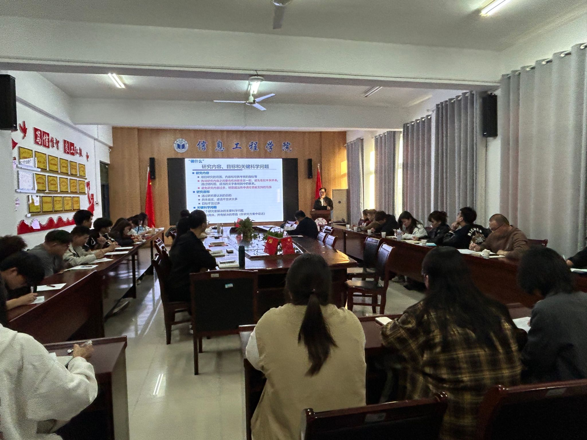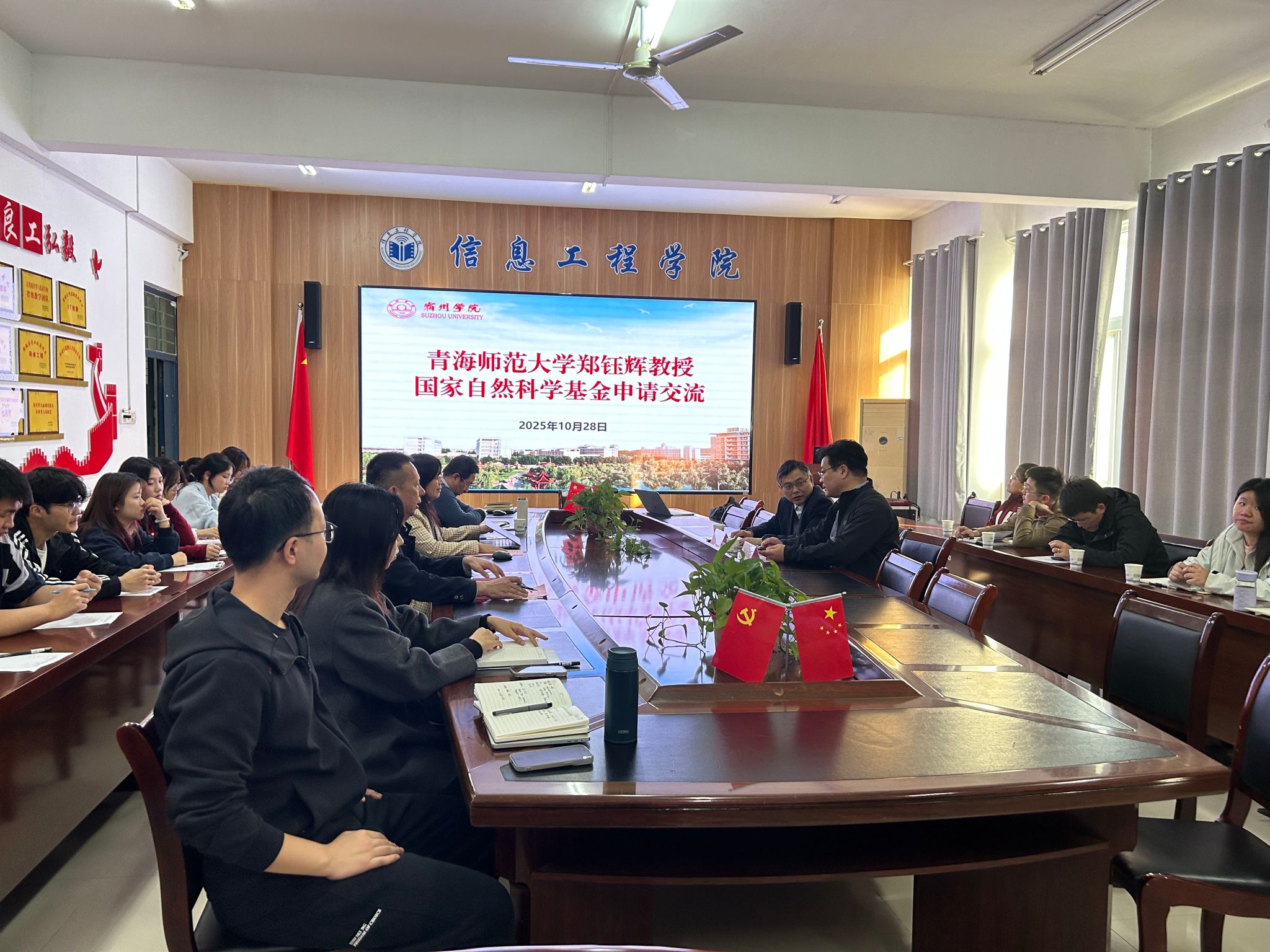 10月28日,青海师范大学郑钰辉教授应邀在工B315作题为“国家自然科学基金申请交流”的专题学术报告。宿州学院副校长陈得宝、信息工程学院党委副书记、院长崔琳,副院长张万礼及学院师生代表到场聆听交流。副校长陈得宝教授主持本次报告会。