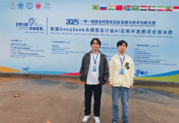 2025年11月6日,2025“一带一路”暨金砖国家技能发展与技术创新大赛之首届DeepSeek大模型及行业AI应用开发赛项全国总决赛在开封大学举行。信息工程学院22软件工程(对口)张奎颍和23网络工程(对口)程文涛进入全国总决赛,经过激烈角逐和密切配合,该队荣获“全国二等奖”,张志伟、杨小莹荣获“优秀指导老师”,宿州学院荣获“优秀组织奖”。