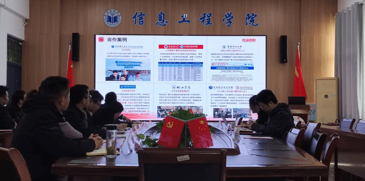 彭飞介绍了龙芯中科与高校在产学研合作、学科竞赛、认知实习、课程改革方面的合作经验,重点介绍了企业面向高校合作的两个“大学计划”:“龙架构信创人工智能通识教育基地建设计划”和“百芯计划”,此次与宿州学院共建的 LoongArch 生态嵌入式联合创新实验室,将聚焦嵌入式技术研发与教学实践,为学校提供设备支持与技术指导。彭飞表示,龙芯中科希望以此次实验室建立为起点,与宿州学院在国产自主化工业控制方向携手发力,共同推进人才培养与技术创新。郭丽介绍了企业产教融合・科教融汇解决方案,探讨产教融合和高校合作案例及后期合作方向。