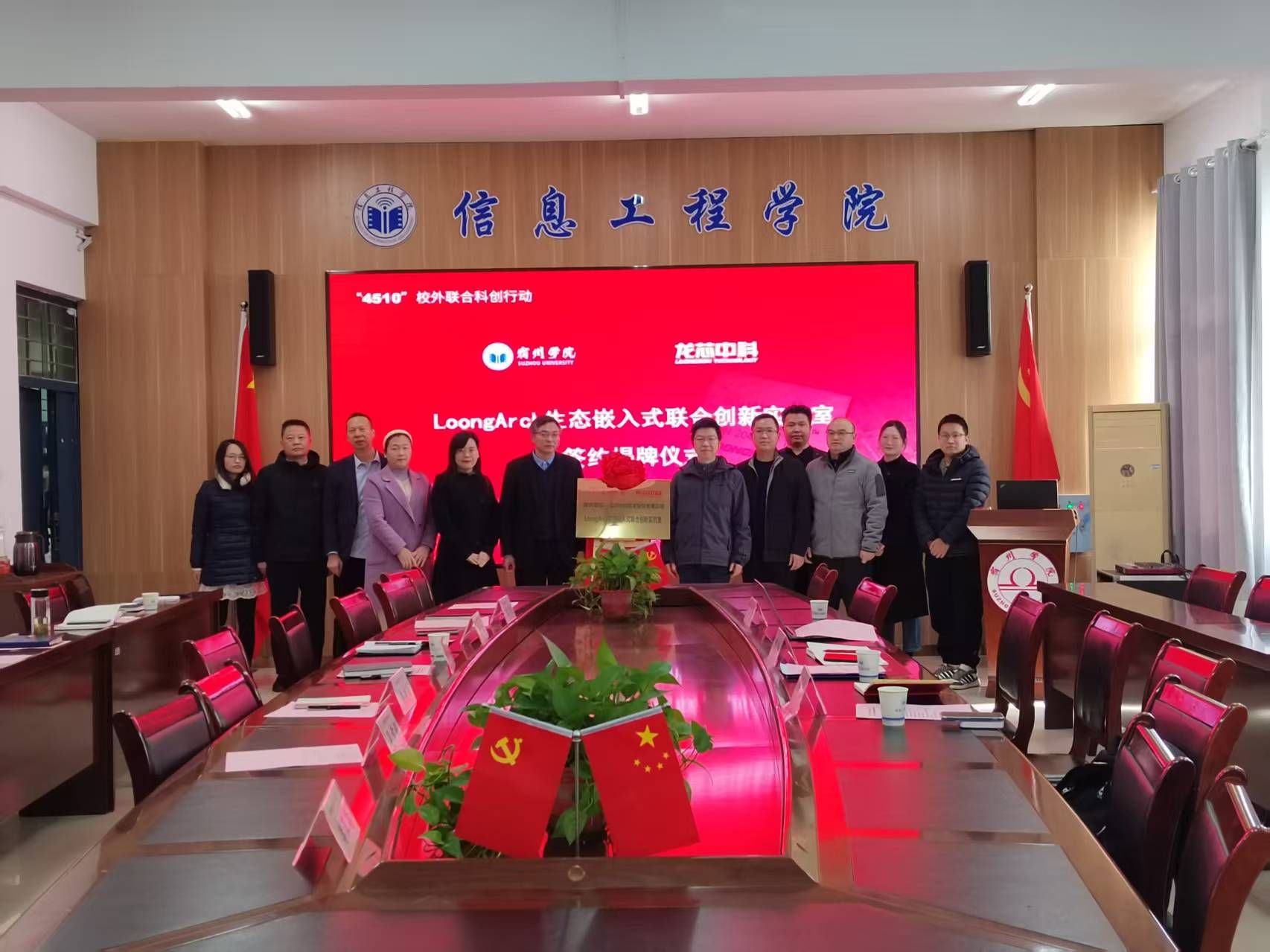 11月27日,由龙芯中科(合肥)技术有限公司与宿州学院共建的LoongArch生态嵌入式联合创新实验室在我校教育园区校区揭牌成立。宿州学院副校长陈得宝,信息工程学院党委书记余晓永,党委副书记、院长崔琳,党委副书记、纪委书记吴孝银,副院长潘正高、张万礼,部分骨干教师,龙芯中科(合肥)技术有限公司总经理彭飞、教育BU经理郭凯、业务经理郭丽等出席揭牌仪式。