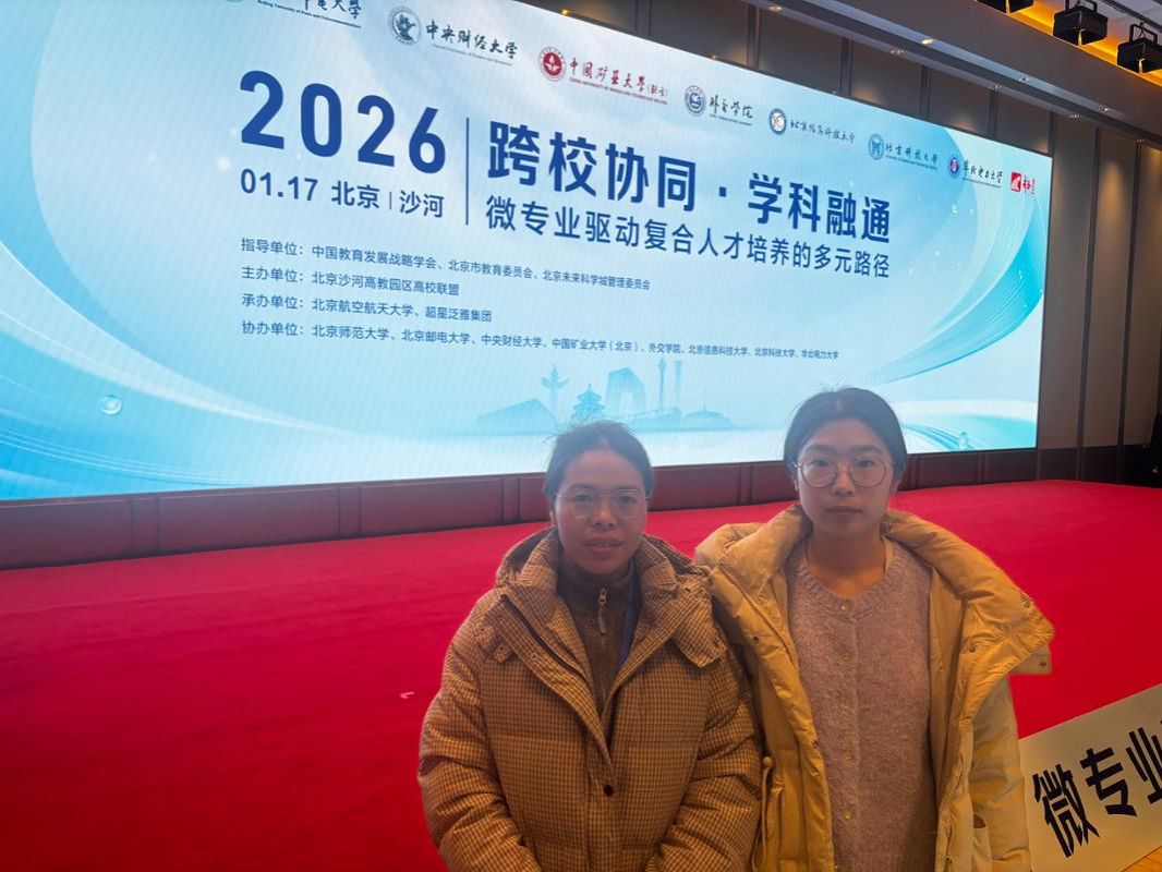 2026年1月17日,由北京沙河高教园区高校联盟主办的“跨校协同、学科融通——微专业驱动复合人才培养的多元路径”高层次论坛在北京成功举办,信息工程学院微专业骨干教师张晓梅、刘新新参加了会议。