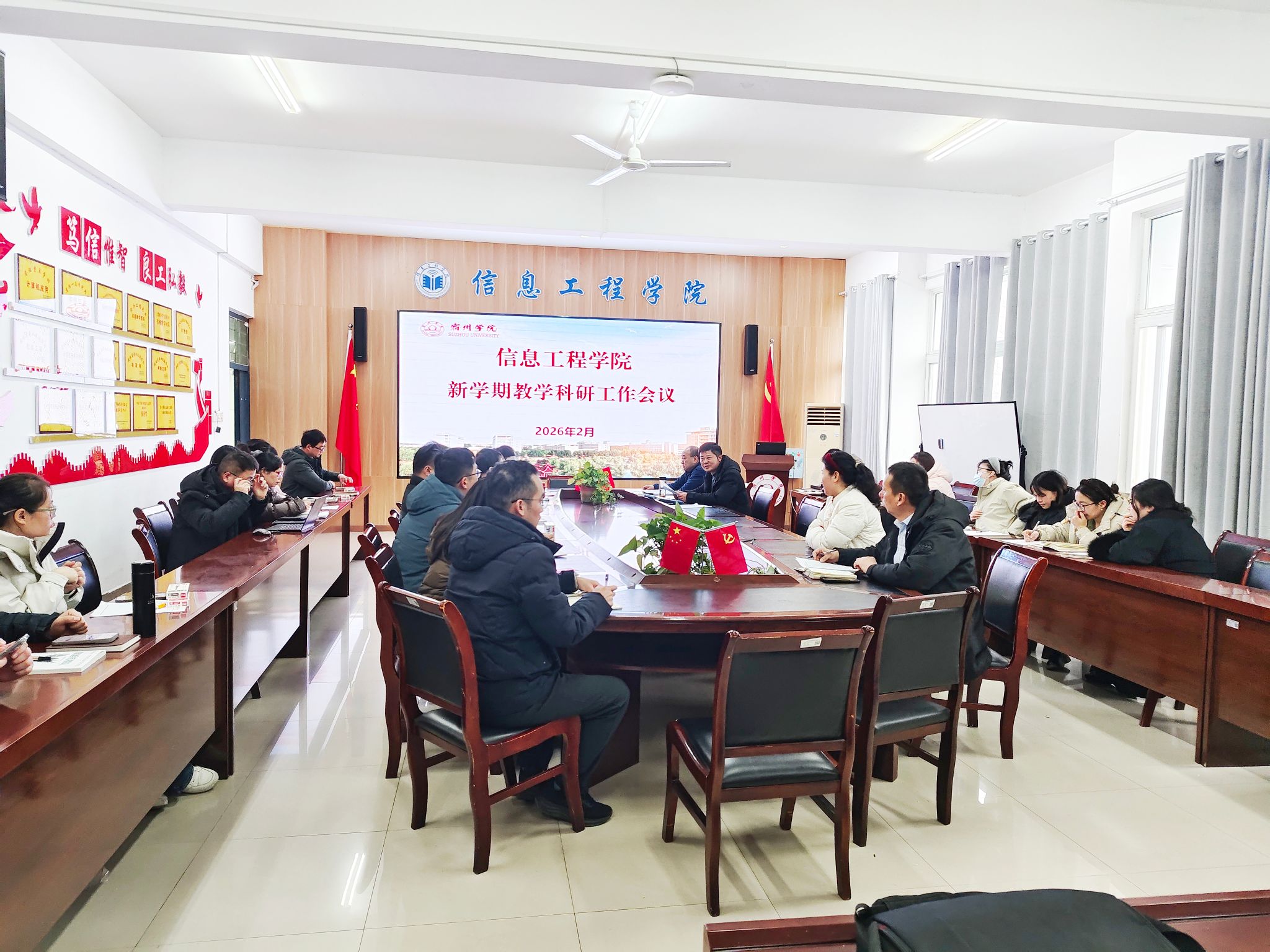 2月28日,信息工程学院召开新学期第一次教学科研工作会议,信息工程学院组织员(正处级)黄永刚,党委副书记、纪委书记吴孝银,副院长潘正高、张万礼及全体教职工参加会议。会议由吴孝银主持。