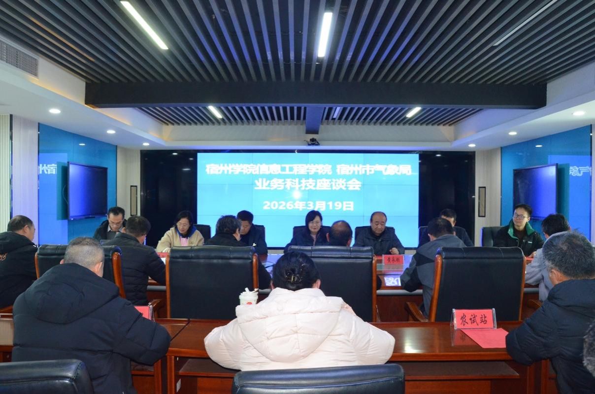 为进一步加强校地合作,促进产学研深度融合,近日,信息工程学院党委副书记、院长崔琳带队赴宿州市气象局开展合作交流座谈。此次会议旨在搭建沟通桥梁,探索双方在科研攻关、技术服务、人才培养等领域的合作新模式。我院正处级组织员黄永刚,副院长潘正高、张万礼,以及部分教授、博士和科研骨干代表参加了此次交流。会议由宿州市气象局党组书记、局长祁宦主持。