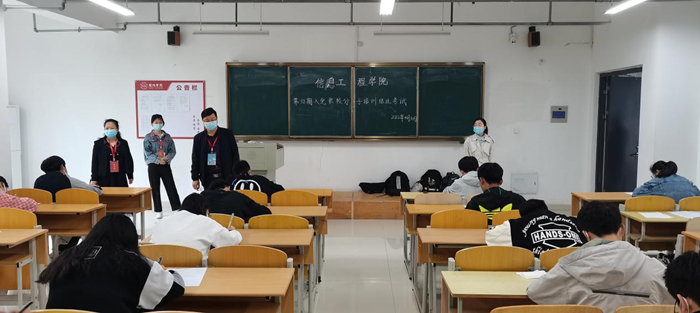 2022年4月30日上午9时,为了检验我院第38期入党积极分子对近期党课培训的学习成果,分别于实训楼A107、A109、A113进行入党积极分子培训结业考试。考生提前十分钟入场,考试时间为一个半小时,第38期入党积极分子全员参加。
