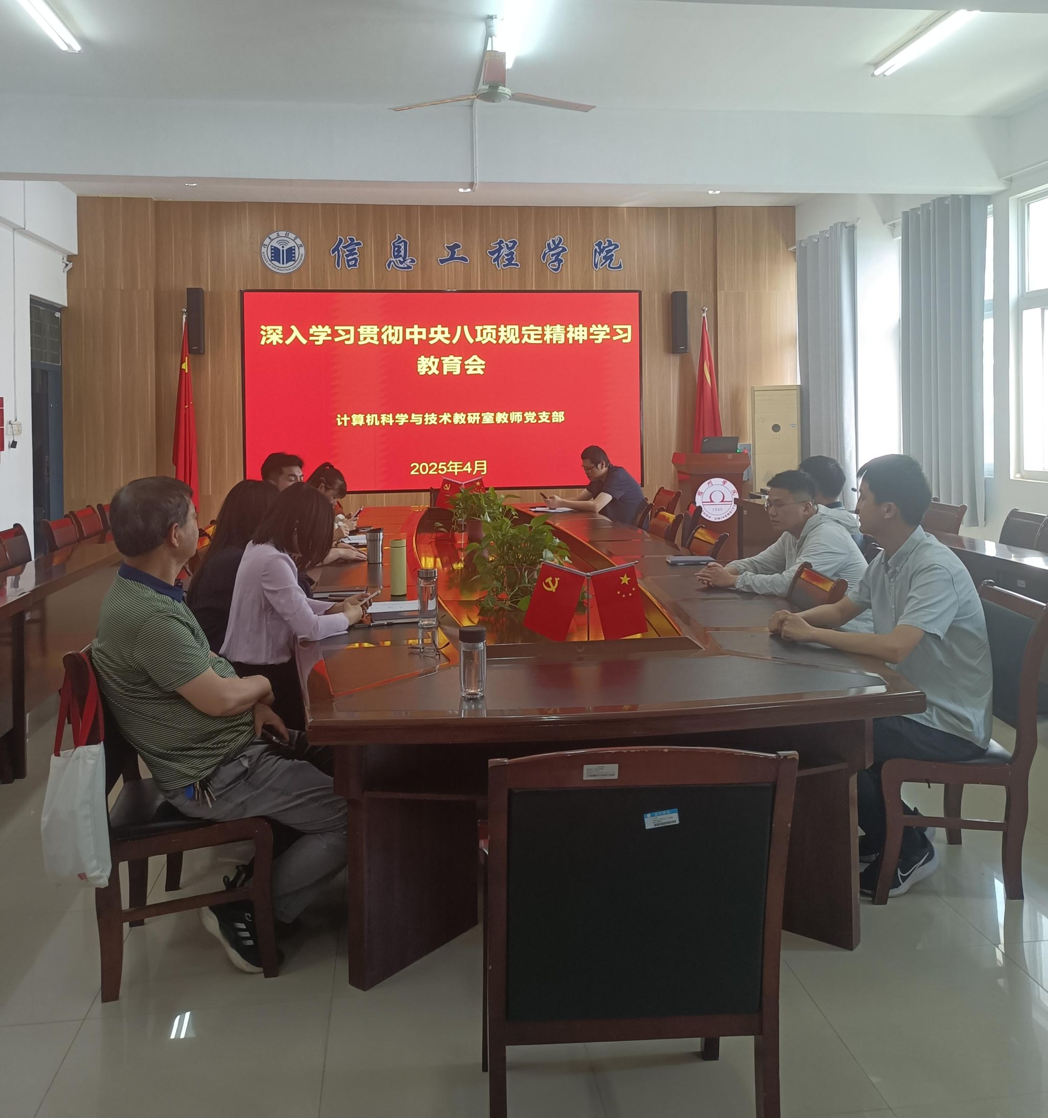 此次深入贯彻中央八项规定精神学习教育会议的召开,为计算机科学与技术教研室教师党支部的党员教师们敲响了作风建设的警钟,明确了努力方向。