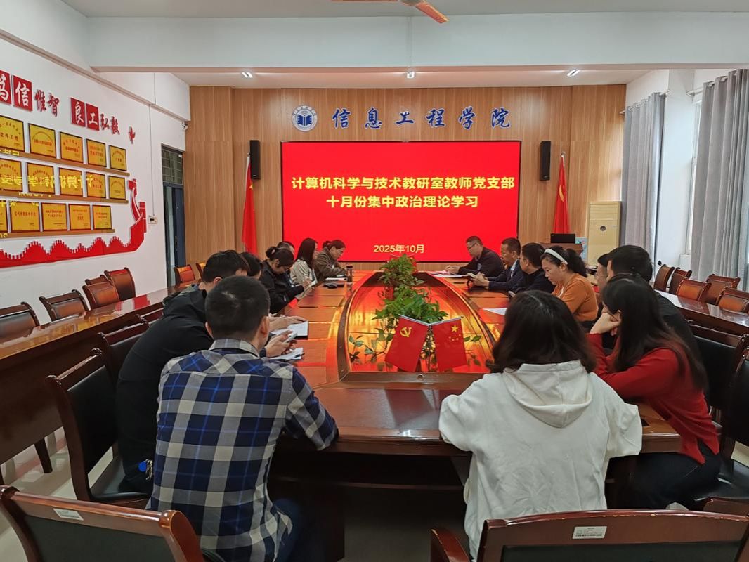 为持续强化教师党员的政治理论素养,筑牢思想根基,切实将理论学习成果转化为推动教学科研与人才培养工作的动力,10月11日,计算机科学与技术教研室教师党支部在工B315开展十月份政治学习会议。会议由支部书记徐旭主持,全体党员教师参加。