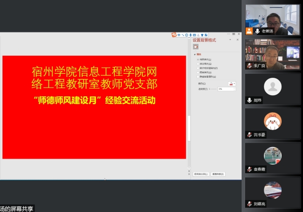为交流师德师风教师先进典型案例,建设师德师风,我教研室于4月21日晚上开展“师德师风建设月”经验交流活动,会议由网络工程教研室教师党支部姜飞书记主持,全体网络工程教研室党员教师参与。