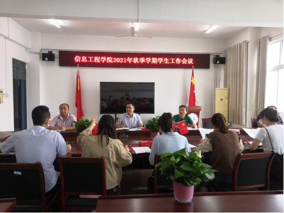 为落实好学校疫情常态化背景下的相关举措,更好地为新学期学生工作起好步、开好局,8月27日上午,信息工程学院在工科楼B315会议室召开全体辅导员工作会议即2021年秋季学期学生工作会议。会议由信息工程学院党委副书记(临时负责)余晓永主持,全体辅导员(班主任)参加了会议。