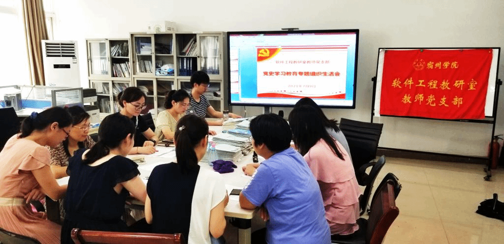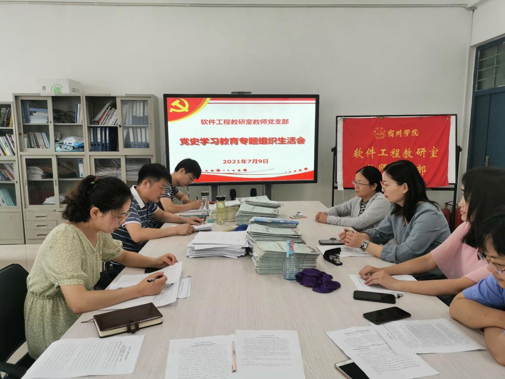 根据习近平总书记关于党史学习教育重要讲话和重要指示批示精神,按照中央和省委有关要求,结合学校党史学习教育工作安排,软件工程教研室教师党支部于2021年7月9日上午在工科楼B308会议室召开党史学习教育专题组织生活会。此次会议由支部书记潘正高主持,支部所有党员参加了会议。信息工程学院党委书记路红梅以普通党员身份参加了此次会议。