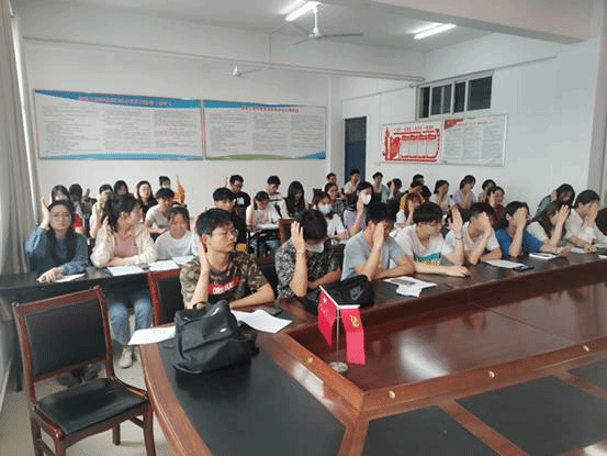 在会上,各位发展对象汇报了对党的认识、入党动机、本人履历、家庭和主要社会关系等情况,并向党组织说明了有关问题;入党介绍人介绍了各发展对象的有关情况,并对其能否入党表明了意见;大会对发展对象能否入党进行了充分讨论,采取无记名投票的方式进行表决,同意接收左森健、熊克媛、李道玉、孟佳、吴李春、谢悦月、晋洋等7名同学为中共预备党员。
