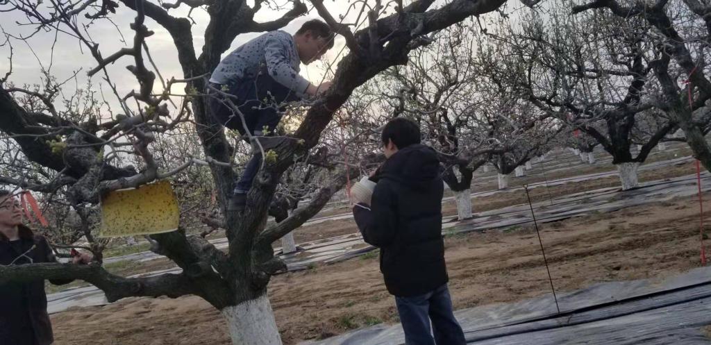 3月是梨花初开季节,为了解气候变化对砀山梨花花期及对砀山梨质量和数量可能产生的影响,17日下午,项目组一行五人驱车前往砀山县园艺场壹号农场采集梨园气候环境数据。项目组成员发扬不怕苦不怕累的精神,逐个检查前期布置的温湿度传感器数据,并做好详细记录,为后期的数据分析做基础。