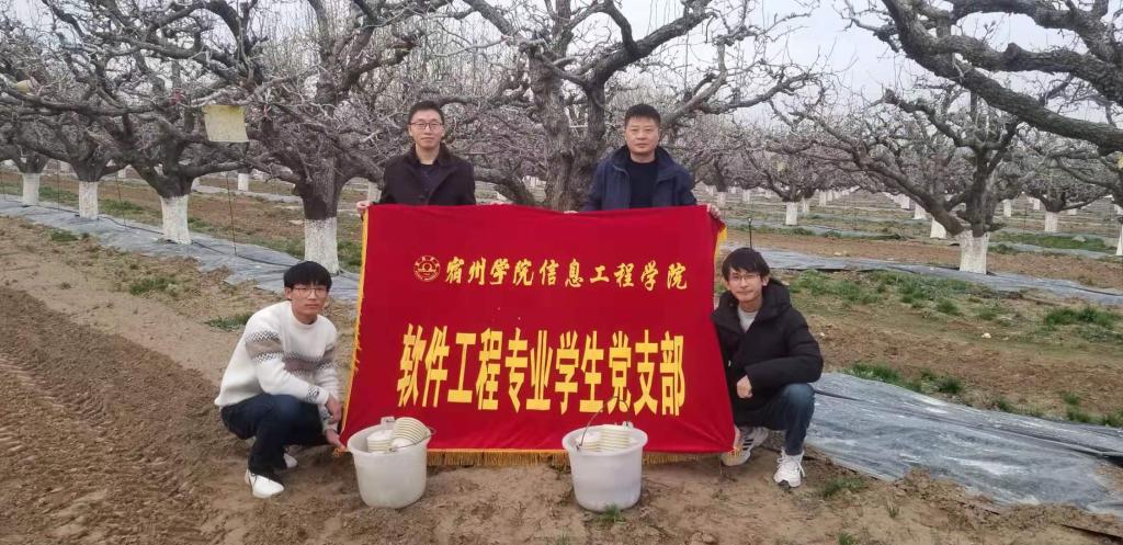 2021年3月17日,软件工程教研室教师党支部潘正高、姜飞两位老师与软件工程专业学生党支部、安徽大学电子信息工程学院信号二党支部前往砀山县园艺场壹号农场联合开展安徽省重点研究与开发项目实施活动。