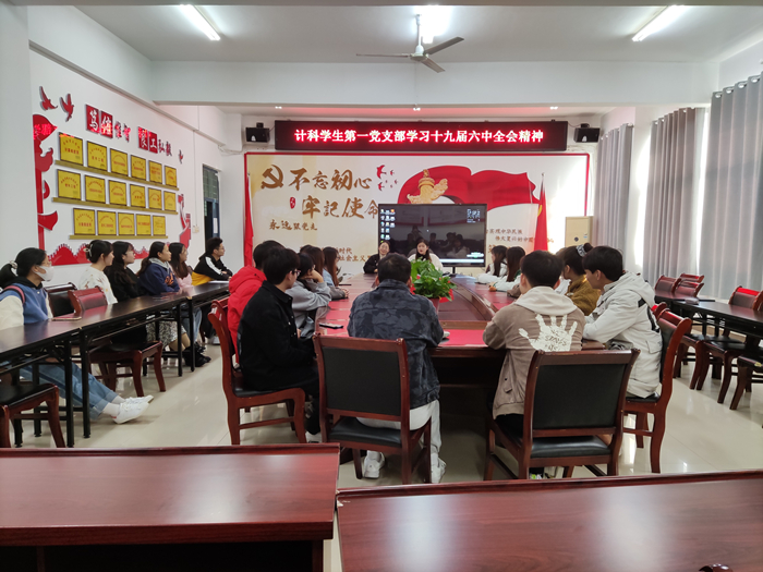 11月25日,计算机科学与技术专业学生第一党支部在工b315召开党的十九届六中全会精神理论学习会,会议由党支部书记吴雨桐主持,全体支部党员参加。