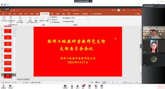 2022年4月27日中午,信息工程学院软件工程教研室教师党支部以线上腾讯会议方式召开支部委员会议,就4月份支部党建工作进行安排部署。会议由软件工程教研室教师党支部书记张志伟主持,支委委员李闪闪、孙莉参加会议。