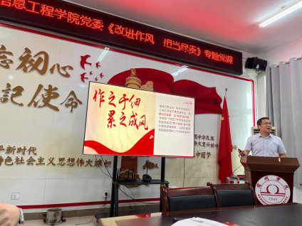 2022年5月25日下午,信息工程学院党委副书记(临时负责)余晓永在工B315会议室为大家作了主题为《改进作风,担当尽责》专题党课,信息工程学院全体教职工参加了会议。