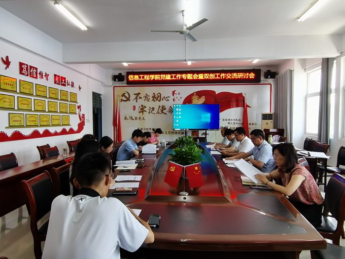为全面提升学院党建示范创建和质量创优工作水平,进一步创新基层党组织工作机制和活动载体,信息工程学院于2022年6月15日在工B315开展党建工作专题会暨双创工作交流研讨会,此次会议由信息信息工程学院党委副书记(临时负责)余晓永主持,信息工程学院党委委员以及各党支部书记参加了会议。