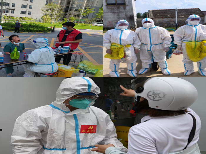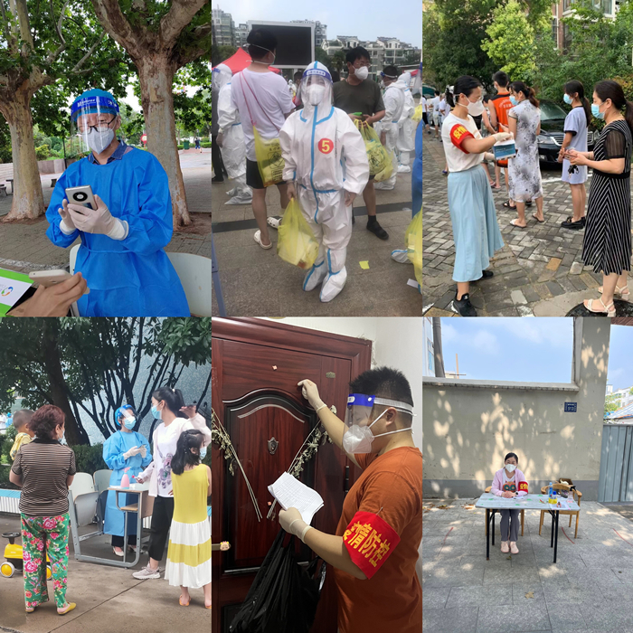 为争取疫情防控阻击战早日得胜,信工院教师党员积极参与所在社区的防疫工作:有的负责摸排每户人数和当天派发的抗原试纸回收工作;有的成为小区“三长”承担物资保障、出入口值班;有的负责上门登记打疫苗做核酸等登记工作;有的负责维持小区核酸检测秩序和准备当天的抗原试剂;有的身在高风险地区,不忘志愿在一线,上门为大家服务等等。他们用自己的实际行动诠释了共产党员的担当和使命,让党旗在抗疫一线高高飘扬。