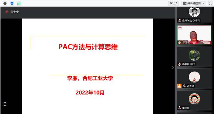 会议期间,李廉教授的报告从一个具体例子,大数据集中最大元素的筛选算法的介绍,讨论了PAC方法背后的计算思维内涵,即如何从计算角度看待和认知世界,讨论了计算思维赋能的三个阶梯,及其与Bloom分类中六个层次的关系。古天龙教授的报告从科技伦理治理的新需求出发,对人工智能伦理的知识脉络、人工伦理的主要问题、人工智能伦理的课程教学等进行了讨论。