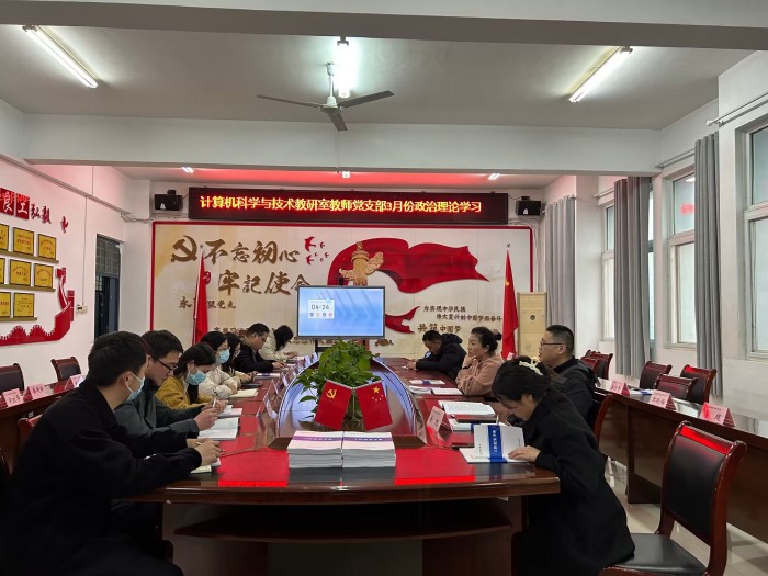 2023年3月22日下午,计算机科学与技术教研室教师党支部在工科楼B楼315开展了3月份政治理论学习活动,会议由党支部书记徐旭主持,支部全体党员参加本次会议。
