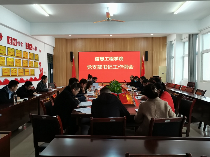为进一步提高党支部书记政治理论素质和领导能力,提升基层党建工作水平,2023年4月4日中午,信息工程学院在工B315召开党支部书记工作例会,会议由信息工程学院党委书记余晓永主持,党委委员、各党支部书记参加会议。