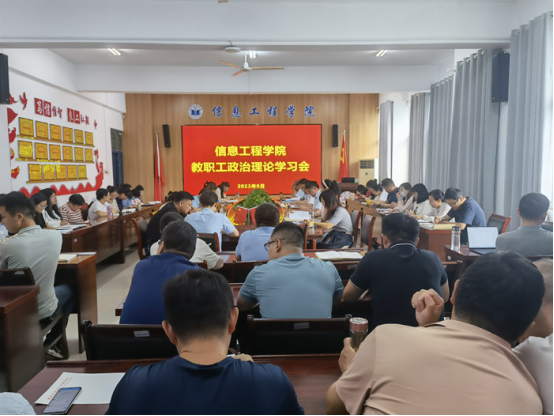 为深入学习习近平新时代中国特色社会主义思想,扎实推进主题教育各项工作,9月2日信息工程学院在工B315召开信息工程学院教职工政治理论学习会,会议由信息工程学院党委书记余晓永主持,信息工程学院全体教职工参加会议。