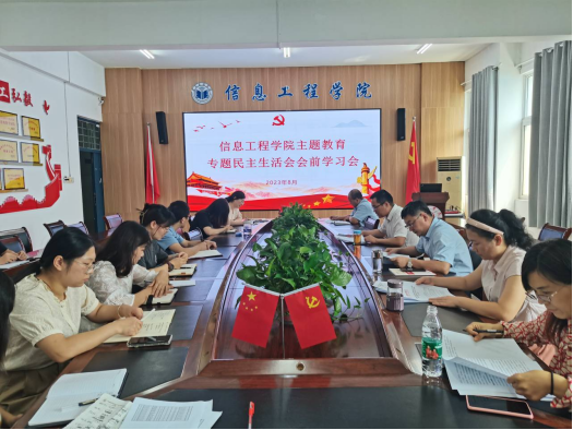 2023年8月29日下午,信息工程学院在工B315会议室召开主题教育专题民主生活会会前学习会。会议由信息工程学院党委书记余晓永主持,信息工程学院党委委员、党支部书记、科级干部参加会议。