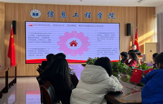 11月23日,信息工程学院党委副书记、纪委书记吴孝银于工b315进行了《习近平总书记给学生回信精神论述摘篇》专题党课,信息工程学院部分学生党员参加学习。