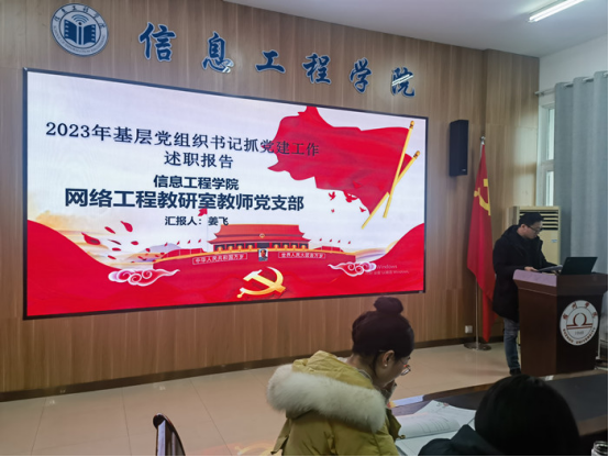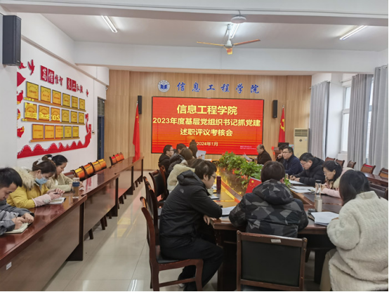 为坚持和完善党对高校的全面领导,夯实基层党建工作,严肃党内政治生活、推动全面从严治党,2024年1月16日上午,信息工程学院在工B315召开2023年度基层党组织书记抓基层党建工作述职评议考核会,会议由信息工程学院党委书记余晓永主持,学院党委委员、各党支部书记、各党支部委员及部分教师代表参加此次会议。