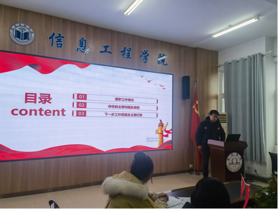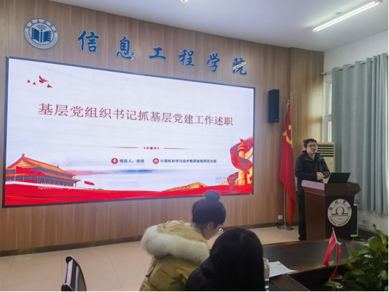 会上,信息工程学院八位支部书记紧紧围绕加强思想政治建设情况、履行抓基层党建工作责任情况、增强党组织政治功能和组织功能情况、强化党员教育管理情况、相关问题整改情况以及存在问题原因分析和下一步工作思路情况等方面,采用PPT汇报方式重点阐述了各支部在“调动支部党员干事创业积极性,鼓励发挥党员先锋模范作用、提升支部战斗堡垒作用”方面的成果,和特色做法、工作亮点。会议按照“一述一评”方式进行,学院领导班子在每位党支部书记述职发言后一一进行了点评,肯定了支部取得的成绩、就存在的问题和下一步努力方向进行了深入指导。