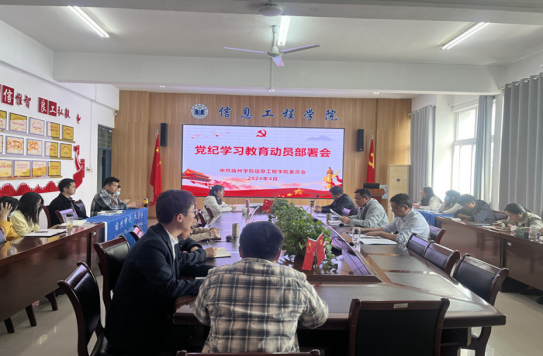 2024年4月17日,信息工程学院在工B315会议室召开党纪学习教育动员部署会。会议由信息工程学院党委书记余晓永主持,信工院全体教职工参加会议。