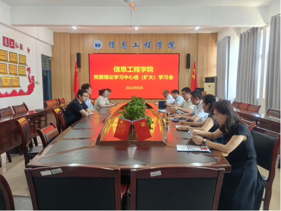 2024年6月11日,信息工程学院在工B315会议室召开党委理论学习中心组(扩大)学习会。会议由信息工程学院党委书记余晓永主持,科级以上干部和党支部书记参加会议。